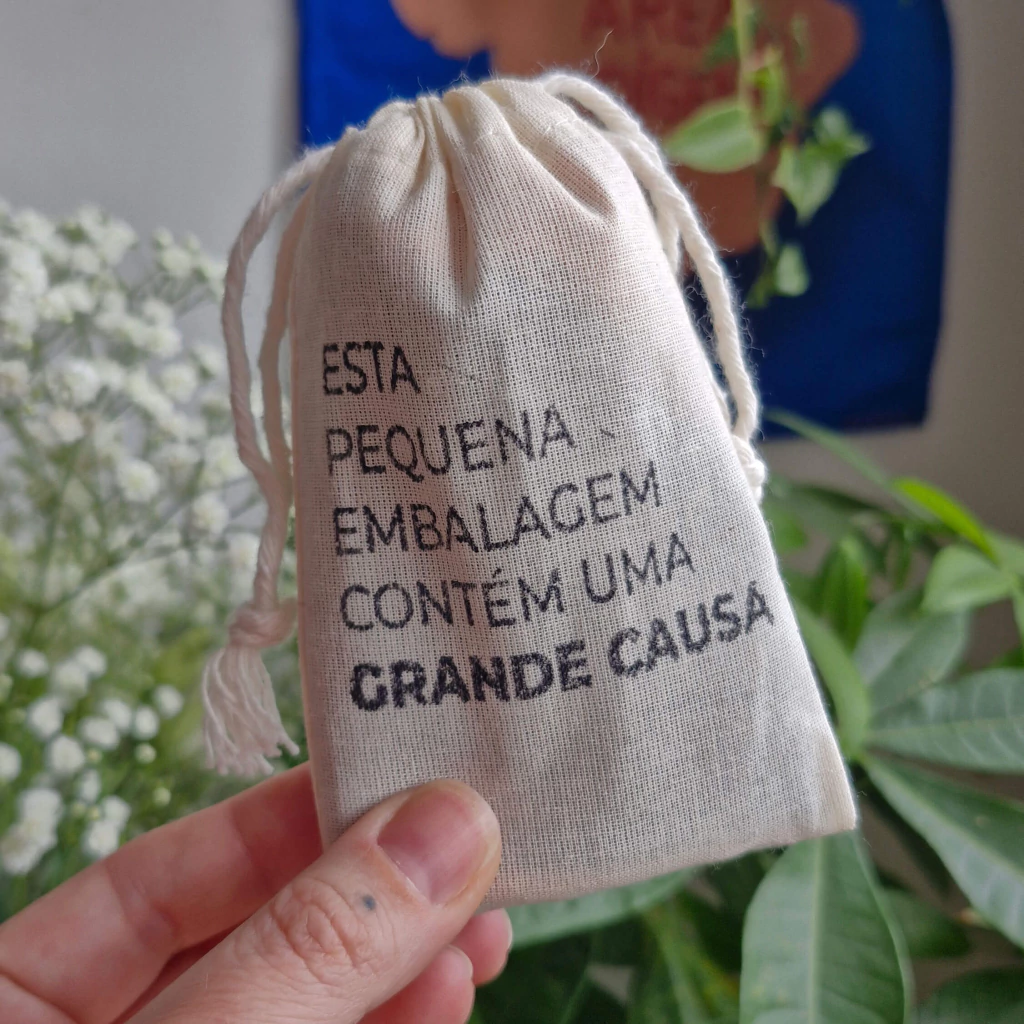 Acompanha saquido de tecido exclusivo: dentro dessa pequena embalagem, contém uma grande causa.